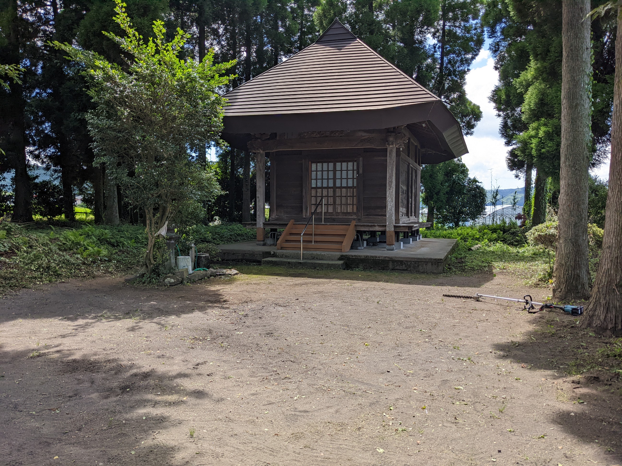 地区の児童さんのラジオ体操が、このお薬師様であるそうですので、夏の清掃もかね、草払いさせていただきました。