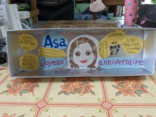 パンの配達と一緒に、お孫さんの誕生日のお祝いの記念立てをつくってさしあげてきました。