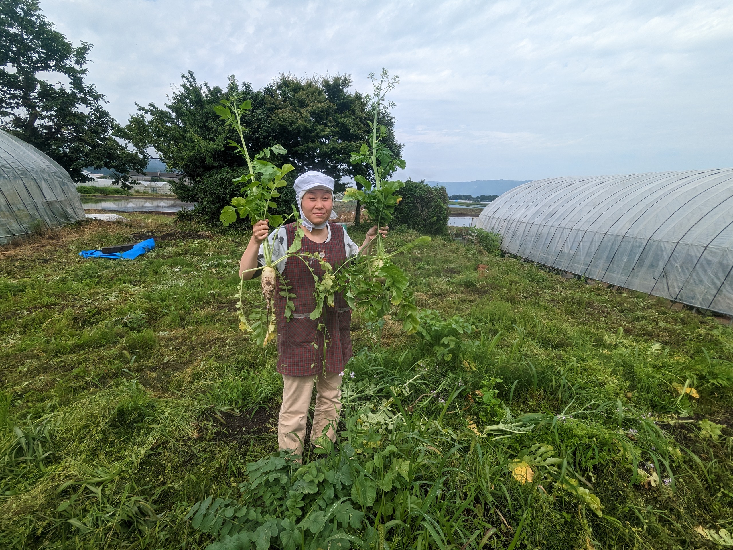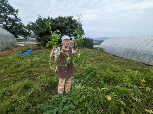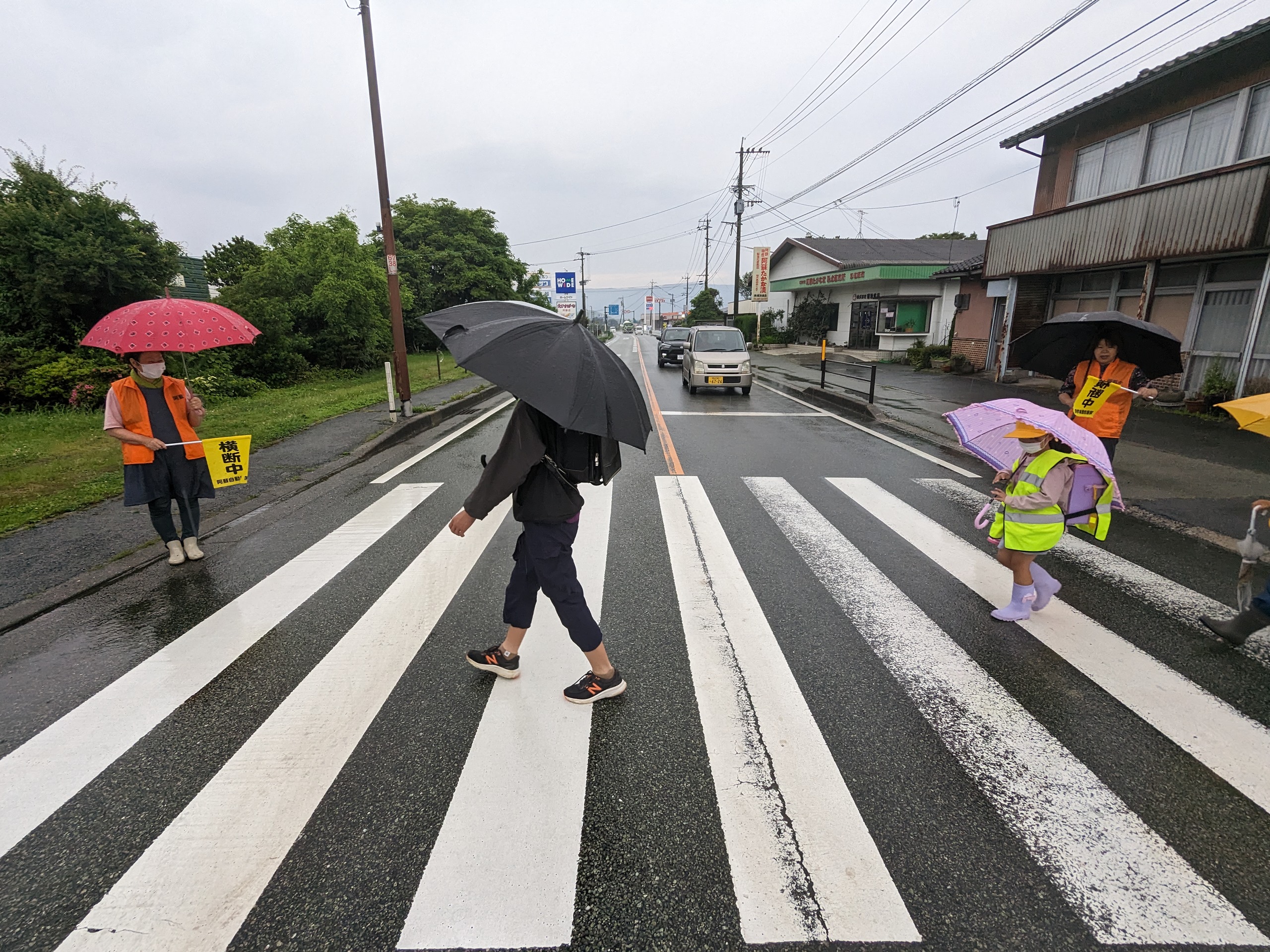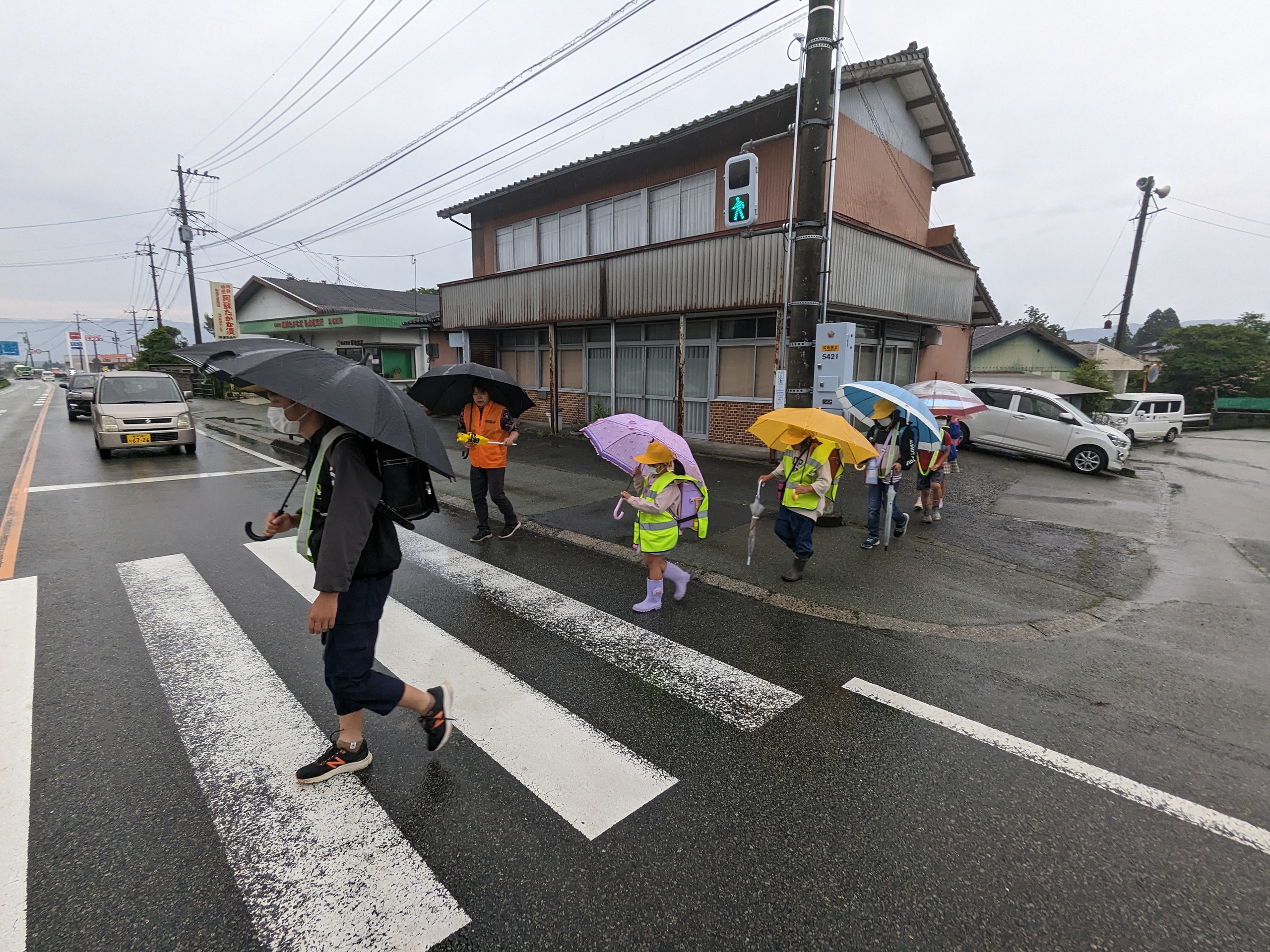 アオサギが飛んでいました。時無し大根が立派になりました。児童の皆さんは雨の中、無事に登校していきました。