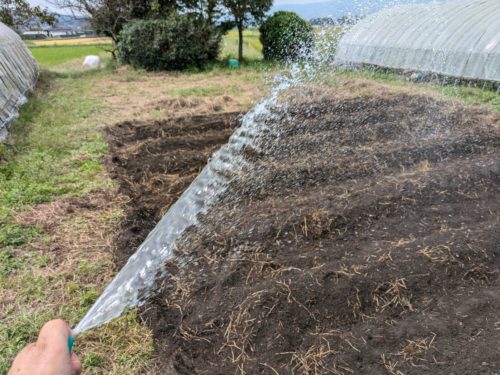 先週、激しいスコールで種が流されたようだったので、思い切って大根植えをやり直しました。