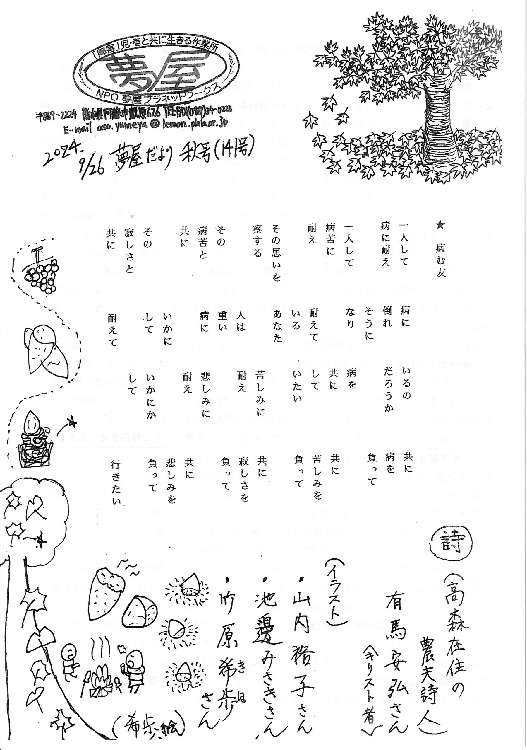 ●夢屋開所は私の生まれた年です。長い間、障害当事者の方々が社会で生きていくことに向き合って来られたのだと感じました。「つめたい世間」の一人にならぬようしていきたいです。