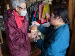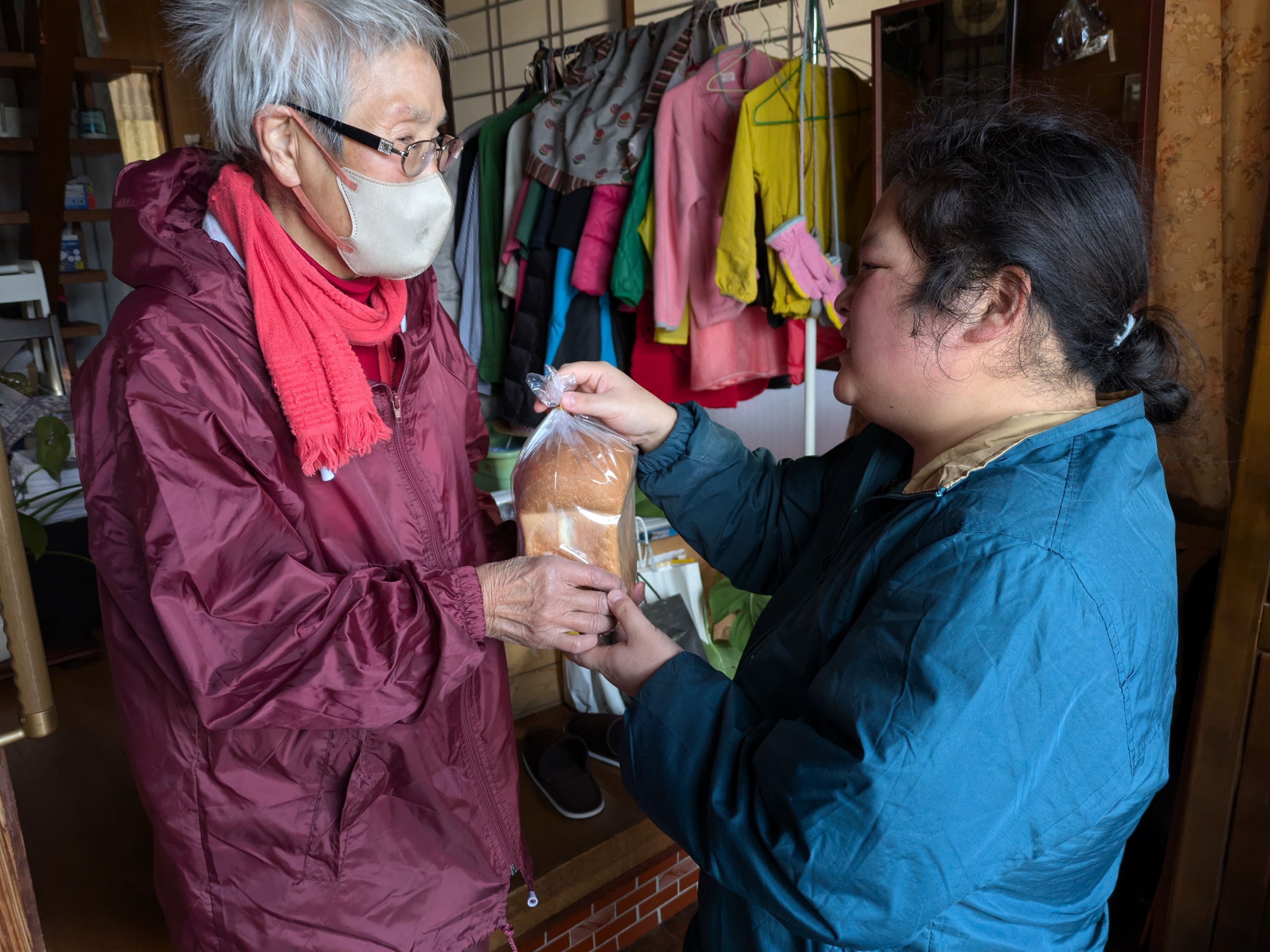 今日は、今年最後の活動日です! その5  パンの配達の途中で、メンバーの住宅にワイヤー物干しを取り付けにいきました。