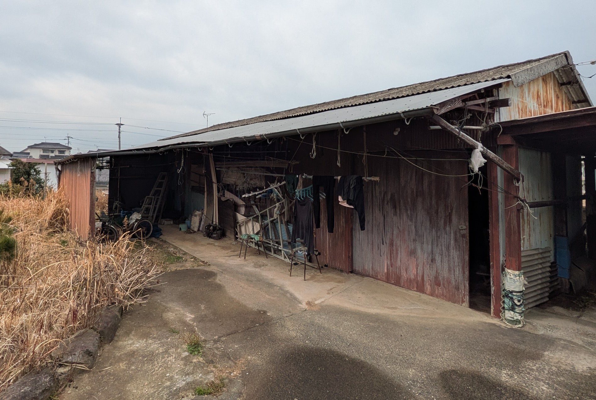 NPO法人 夢屋プラネットワークス > ミヤモっちゃん日誌 > かつて海苔の養殖をやっていた頃使われていた実家の作業小屋です。通称『かんそ小屋』“かんそ“は『乾燥』の意味です。オイルショックで灯油が値上がり、次なる機械化の波にもついていけず、あえなく中3のとき廃業となりました。毎年、シーズン中には夕方から8時、遅いときは10時頃まで手伝いをしていた私は(潮の干満に合わせ有明海へ船を出し、リヤカーで積まれた海苔を運んでくる親の苦労も知るところなく)正直ホッとしたしだいです。(夢屋代表 宮本誠一)