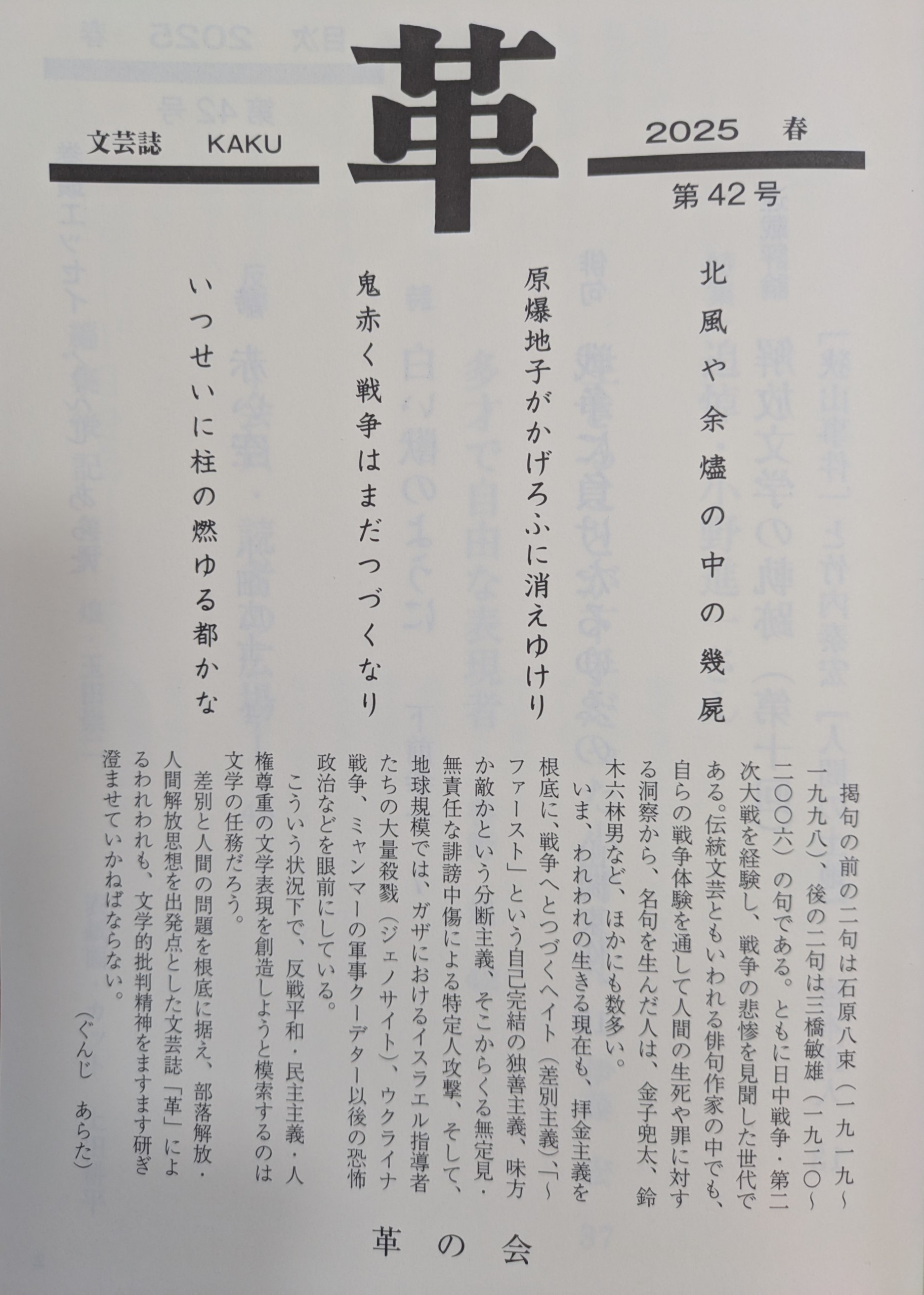 神戸の善野さん、玉田さんから差別・人権問題を正面に据えた文芸誌『革』のご恵贈を賜りました。あリがとうございました。