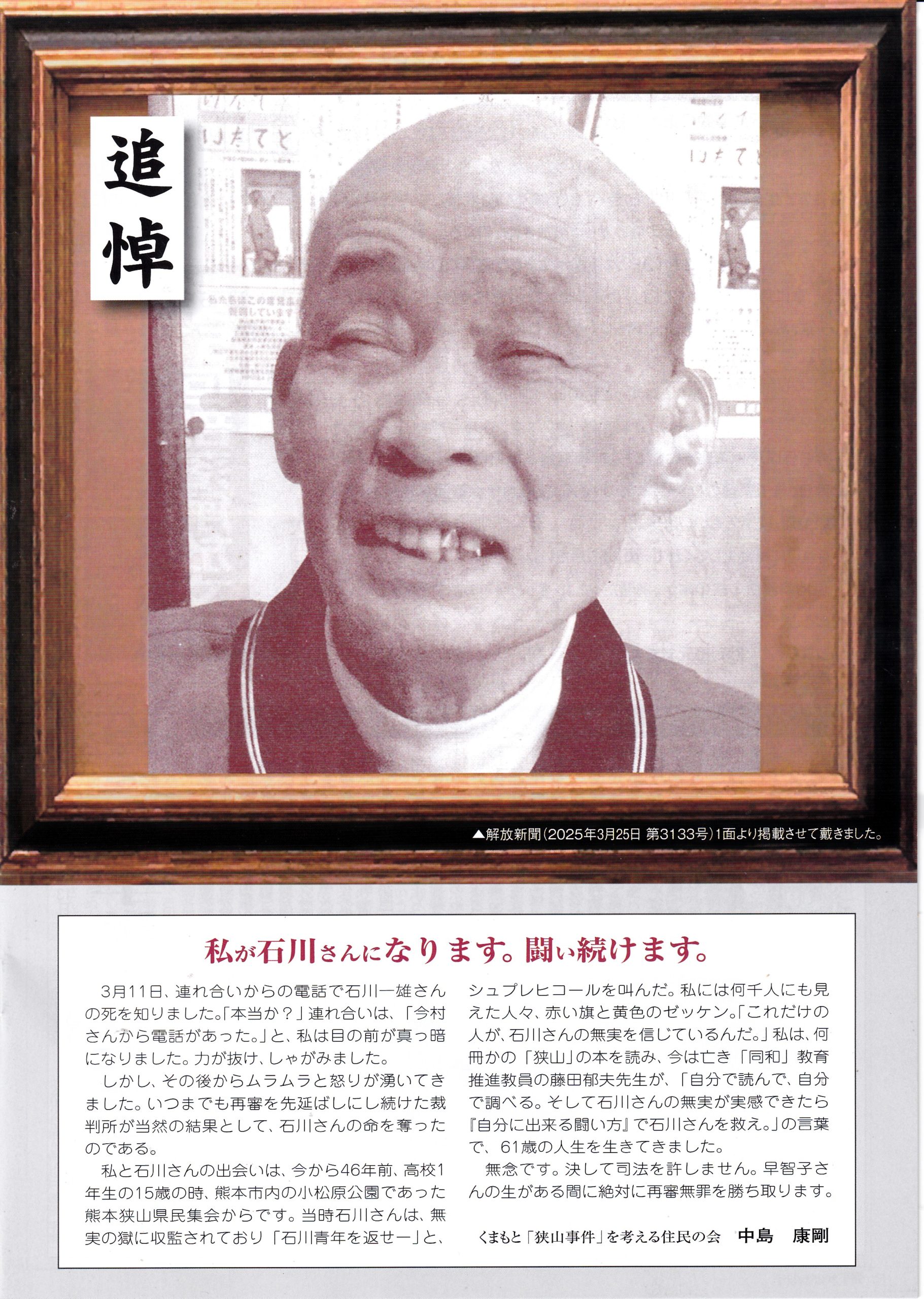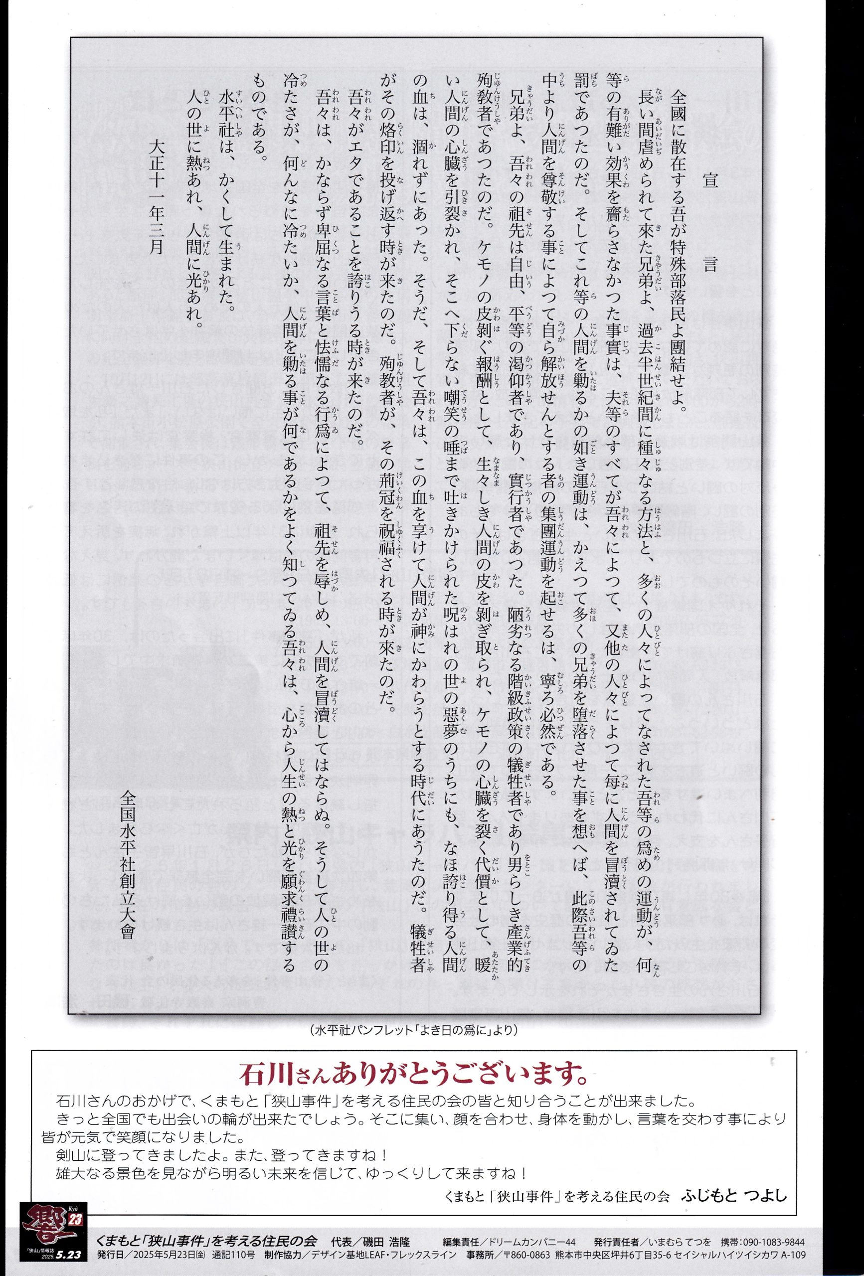 『くまもと「狭山事件」を考える住民の会』様より石川一雄さんの追悼集『響23』を送って下さいました。ありがとうございました。