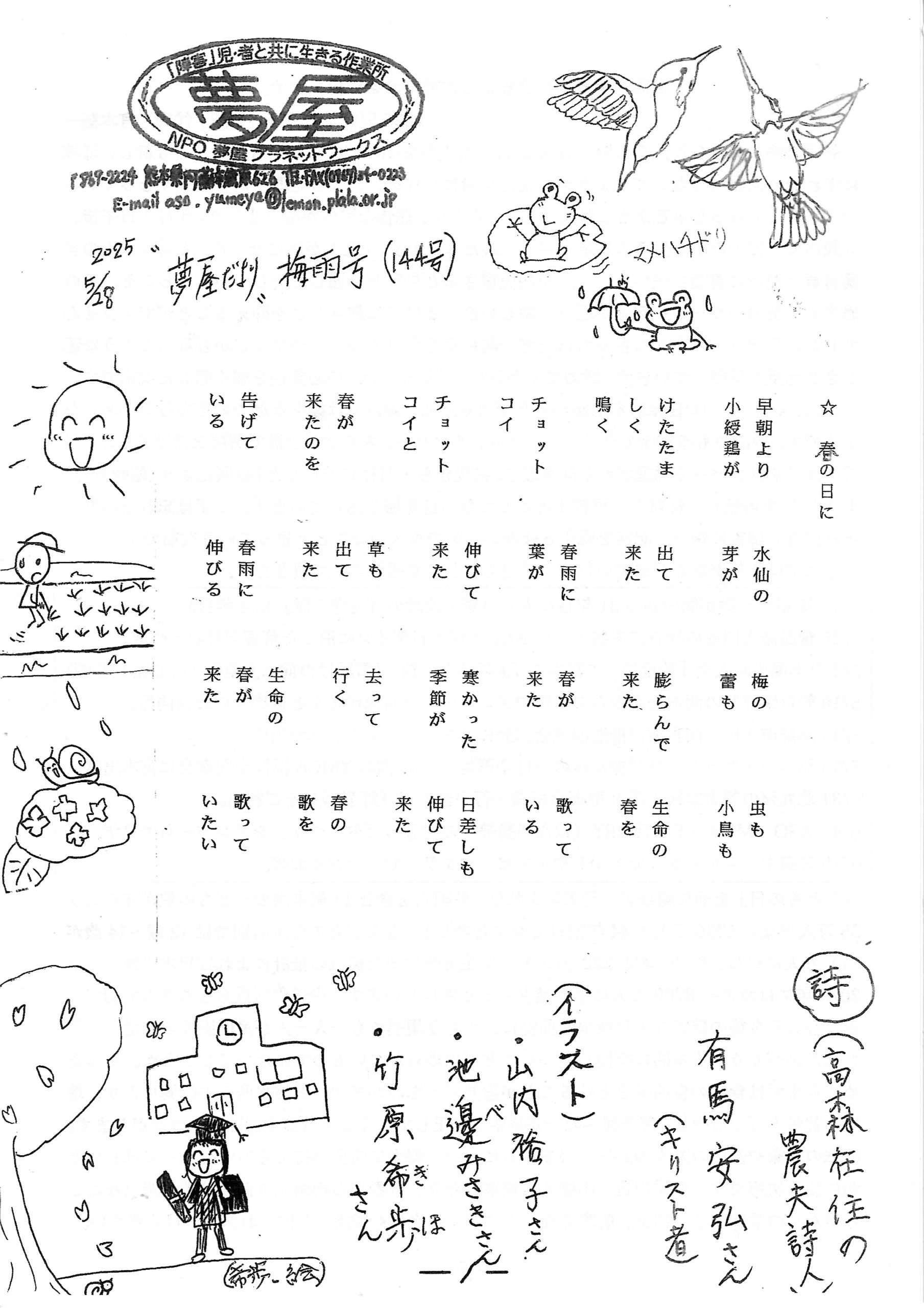 2025『夢屋だより』梅雨号144号からの文章です。
