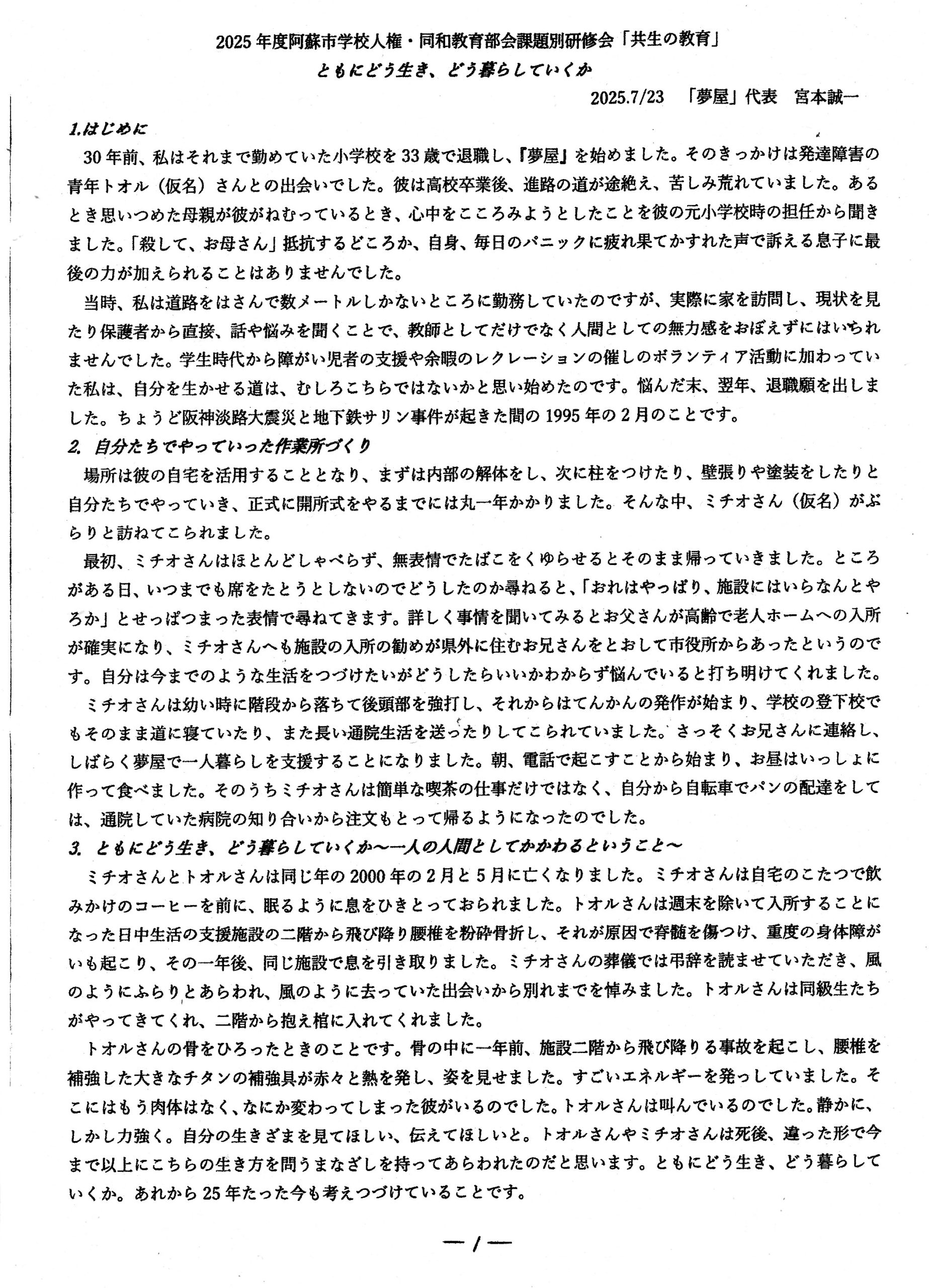 2025.7/23阿蘇市学校教職員人権同和教育課題別研修会「共生」の学習では次のようなレポートを発表させていただきました。