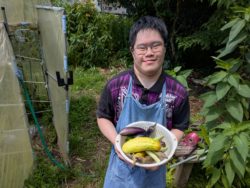 メンバーもしっかり活動しています。ハウスを破り外へ出たトマトも元気です。